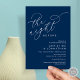 Ponha o tom para uma noite inesquecível com o nosso cartão de convite 'A Noite Antes'. Admita a elegância moderna como convida os entes queridos a juntarem-se a vocês para uma memorável celebração romântica pré-casamento. Com design e roteiro elegantes, em esquema azul marinho, este convite promete uma noite de antecipação e alegria.