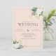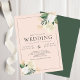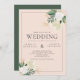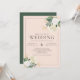 Um bonito convite de casamento, cor-de-rosa e verde-sábio, com dois bouquets de rosa-d'água em branco e verde, com uma mistura de brilho falso. Excelente para um casamento no inverno.