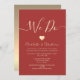 Celebre sua cerimônia íntima em estilo com este elegante convite para microcasamento vermelho. Apresentando um fundo negro, sotaque cardíaco dourado e caligrafia moderna graciosa, esta design é perfeita para elopementos e casamentos pequenos. Personalize facilmente a sua união privada e janto de recepção.