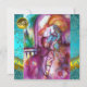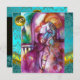 Cena de sacada da tragédia de Romeu e Juilet de William Shakespeare .Pintura aquosa contemporânea original com ouro, folha de prata e cores iridescentes em cores roxas brilhantes, rosa, verde, laranja amarelo, téal, turva, branca .Pintura de Búlgaro Lumini (c).Esta carta legal e artística é perfeita para casamentos, chás de panela, festas de dança, festas ,,noivados românticos,salvar anúncios de data, coquetéis, celebrações, aniversários, encontros,