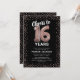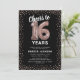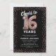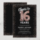 Convite de aniversário de 16 anos elegante com um fundo preto estiloso que pode ser alterado para qualquer cor, brilho cintilante rosa antigo dourado, dezesseis balões de hélio rosa antigo dourado, e um modelo de texto de celebração de aniversário de 16 anos moderno que é fácil de personalizar.