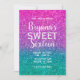 Convite Rosa Aqua Teal & Roxo Brilhante Glitter Doce 16