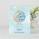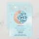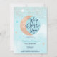 Azul giro Adorável Estamos sobre a festa do chá de fraldas do guião da Lua com ilustrações bonitinhas com lua brilhante rosa, estrela azul editável, sinais de zodíaco, nuvens. Com azul pastel editável e azul marinho.