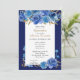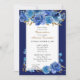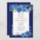 Quinceanera Floral Rosa azul e Folha Dourada e Convite em Massa. Elegante enquadrou design com flores de rosa de de aquarela e folhas em tons de azul e ouro. Design moderno para sua comemoração de 15. Por favor, navegue na minha Coleção de Folhas Azul e Dourada para obter produtos correspondentes ou envie-me uma mensagem para criar os modelos de que necessita.