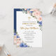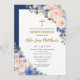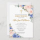 Convite Rosa Azul Floral Dourado Batismo Batizado