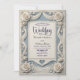 Convite Rosa Azul Neoclássica Romântica Vintage 3D
