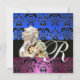 Design elegante, sofisticado e único em azul, rosa, fúcsia, preto, branco com jóia art nouveau dourada em cores vibrantes para papel metálico champanhe. Fácil de personalizar com suas iniciais e texto próprio como cartão de anúncio / cartões de lugar / cartões de save-the-date / cartões de agradecimento /, chás de noiva, aniversários, festas, chás de noivado, aniversário de casamento ou qualquer outro evento que você deseje!