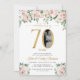 Convite Rosa Bege com Floral Foto 70º Aniversário