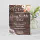 As coisas mudam. Envie aos seus convidados um belo convite de mudança de data de casamento com esta decoração floral rosa e bege com renda e luzes de corda. Ótimo para casamentos rústicos e campestres.