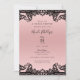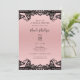 Convite Rosa Bege Preto Tinta Renda Elegante Chá de Noiva