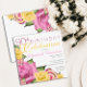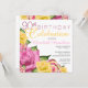 Convite de aniversário floral cor-de-rosa e amarelo, artificialmente estilada. Design original por Designs Holiday Hearts. Se precisar de assistência para personalizar, envie-nos um e-mail para info@holidayheartsdesigns.com