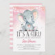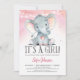 Convite Rosa Chá de fraldas Elefante para Meninas