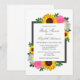 Design apresenta girassóis, rosas e margaridas elegantes com uma paleta de cores amarela, rosa e branca ouro. Design também apresenta uma estrutura de cinza de carvão. Você pode alterar a cor de fundo na parte frontal e na parte traseira para a cor de sua escolha ou deixar ambas definidas como brancas.