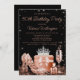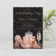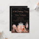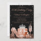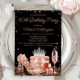 As mulheres convite de aniversário rosa de ouro com calçados bonito de alto salto de rosa, garrafa de perfume, vidro de champanhe, coroa e presentes sobre um belo fundo brilhante preto. Este convite de aniversário rosa dourado feminino é facilmente personalizado para o seu evento simplesmente adicionando os detalhes do seu evento. Você pode alterar a cor do plano de fundo e a cor do texto.