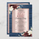 Rosas de borgonha em rosa dourado e fundo de textura de madeira azul de marinho.