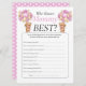 Chá de Bebê. ursinho balões Quem Conhece a Mamãe Pontos de Pôquer Cartão de jogo de perguntas com aquarela, rosa e roxo para combinar com a coleção time for tea. Você precisa responder o máximo de perguntas possível. Uma maneira divertida de interagir com os convidados do chá enquanto a futura mamãe abre seus presentes no chá de bebê. Clique no botão "Personalize!" para alterar o tamanho do texto, cor do texto, estilo da fonte e muito mais!