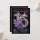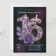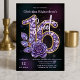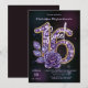 Este convite do Sweet 16 apresenta um magnífico "16" absolutamente incrustado com roxo brilhante e joias ametistas, cada pedra cintilante como uma pequena estrela. A palavra "Doce" elegantemente cursivo, flutua acima, acrescentando um toque de encanto sofisticado. Um rosa roxo e espantoso, feito a partir destas mesmas gemas requintadas, floresce na base, complementando perfeitamente o rico e escuro fundo que sutilmente muda de carvão profundo para uma ameixa misteriosa. Folhas deliciosas e joalhadas se uniram, melhorando a sensação do opulente com seu próprio e sutil nadador. É um design onde a poeira estelar encontra sofisticação, prometendo uma celebração inesquecível.