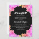 Este elegante convite para chás de fraldas florais é perfeito para um chá de fraldas de verão moderno. A design romântica apresenta belas flores luminosas de orquídeas com elegante caligrafia branca sobre fundo preto.