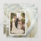 Um convite de festa de aniversário de 25 anos de casamento romântico com sua própria foto de casamento (ou outra) emoldurada por um desenho prateado rodopiante em um fundo de rosa branca marfim. Personalizável para qualquer outra ocasião romântica. Este convite faz parte de uma coleção de casamento.