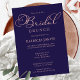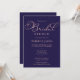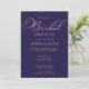 Convite Rosa de Ouro Azul Marinho Folha de Script Brunch Nupcial
