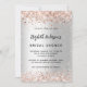 Um fundo de olhar mal prateado. Decorado com rosa dourado falso brilho. Personalize e adicione um nome e detalhes da parte. O nome é escrito com um script de estilo manuscrito