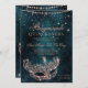 Uma QUINCEAÑERA moderna, quic e glamourosa, com uma máscara de mascarada dourada desenhada à mão, com faíscas de diamante brilhante rosa de ouro sobre fundo de água lacrimejada.