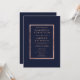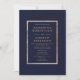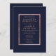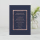 Um convite de casamento moderno, elegante, chic e simples faux rosa em um fundo azul marinho personalizável. Perfeito para um casamento elegante.
