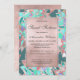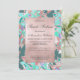 Convite Rosa de ouro verde-téal - floral Sweet 16
