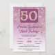 Convite Rosa de queda, brilho Dourado 50ª Festa de anivers