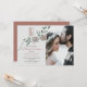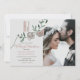 Celebre o seu amor com este convite de casamento fotográfico romântico e minimalista. Com um monograma personalizado no topo, flores suaves em rosa poeirado e folhagens em verde pastel, este design moderno-boho equilibra elegância e simplicidade. Uma foto tamanho real do casal adiciona um toque pessoal e atemporal. Perfeito para casamentos em tons neutros, primavera ou pastel com uma estética suave e sofisticada. Personalize facilmente os nomes, detalhes do casamento e foto para torná-lo único.