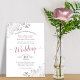 Este belo convite para o casamento apresenta um design simples, mas elegante, com um roteiro de lacy, rosa poeirento ou caligrafia colorida em fundo branco e um filigre de folha de folhas de cinza prateada nos cantos. A formulação é formal, mas a disposição é moderna e na moda.