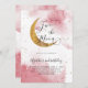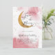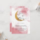 Cartão de convite de festas de segundo aniversário da menina Dreamy com arte aquosa de céu cor rosa com lua de ouro falsa e estrelas. O texto diz "dois a lua."