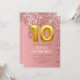 Rosa ouro, brilho, gota a gota, brilho, rosa, menina, giro, elegante, moderno, 10º Convites de festas de aniversários. Personalize-o com seus detalhes.