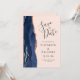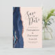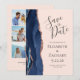 Este elegante e moderno salve a placa de data apresenta um marinho azul de aquarela agate borda aparada com falso rosa dourado. O texto personalizável é uma cinza de carvão em um plano de fundo cor-de-rosa pincelado. Substitua facilmente as cinco imagens de exemplo na parte traseira do cartão por suas fotos e adicione um texto breve com informações adicionais (como o URL do seu site).