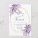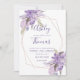 Rosa dourado tipografia geométrica casamento com galhos de folha de cor verde pintados manualmente, flores de lavanda roxas, perfeito para primavera e casamentos de verão