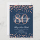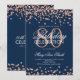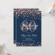 Elegante modelo de convite de 80º Aniversário Falso Glitter Confete Rosa Dourado Azul Marinho. Ótimo para festas de 80 anos e mais!
