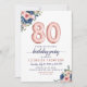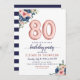Marinho Floral Blue Blush Pink Balloon 80 de Aniversário Convite de Aniversário O design apresenta marinho de aquarela azul e flores cor-de-rosa pinceladas com sotaque rosa de balão dourado. Se você quiser mudar os balões numerados, sinta-se à vontade para me enviar um e-mail em panggadesigns@gmail.com