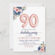 Marinho Floral Blue Blush Pink Balloon 90 de Aniversário Convite de Aniversário O design apresenta marinho de aquarela azul e flores cor-de-rosa pinceladas com sotaque rosa de balão dourado. Se você quiser mudar os balões numerados, sinta-se à vontade para me enviar um e-mail em panggadesigns@gmail.com