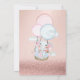 O convite para o chá de fraldas bonito apresenta um glitter rosa dourado com um elefante giro no chá de fraldas de balão de ar. Esses convites para chuveiros de bebês são facilmente personalizados para seu evento simplesmente adicionando seus detalhes.