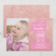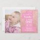 primeiro aniversario Rosa Dourado Brilho e Convite Rosa com foto personalizada. Rapariga 1rua Primeiro Convite de aniversário. Brilhante Rosa Dourado, cor-de-rosa e fundo branco rosa. Para mais personalização, clique no botão "Personalizar" e use nossa ferramenta de design para modificar este modelo.