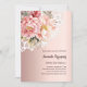 Um elegante convite de 50 anos para mulheres. Um fundo de gradiente de ouro rosa decorado com flores, rosas e rendas de ouro rosa e rosa. Personalize e adicione um nome e detalhes da parte.