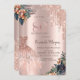 Derramamento elegante de ouro rosa, flores escuras e elegantes vestidos em fundo de ouro rosa. Belo convite que pode ser personalizado com seu nome. Selecione o botão "personalizar" para alterar o estilo, a cor e o tamanho da fonte.