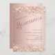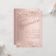 Um convite moderno minimalista da Quinceañera. fundo rosa de gradiente dourado e a palavra Quinceanera escrita com letras grandes. Decorado com falso brilho, confetti. Personalize e adicione um nome e detalhes da parte.