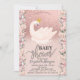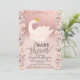 O convite para o chá de fraldas bonito apresenta um glitter rosa dourado com um cisne e rosas bonitos. Esses convites para chuveiros de bebês são facilmente personalizados para seu evento simplesmente adicionando seus detalhes.