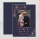 Chic, convite de casamento simples para salvar a data com foto em azul escuro com uma moldura sutil em rosa dourado e um contorno floral elegante em rosa dourado que você pode personalizar com a foto do seu noivado. Basta adicionar os detalhes do seu casamento. Se precisar de ajuda ou produtos correspondentes, entre em contato conosco através da nossa loja. Estamos felizes em ajudar a tornar o seu casamento o dia mais lindo!
