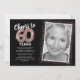 Elegante convite de aniversário do sexagésimo com um fundo preto na moda que pode ser mudado para qualquer cor, uma foto da aniversariante / garoto, brilho brilhante rosa, balões de hellio de 60 rosas e um modelo de texto de celebração de 60 anos moderno que é fácil de personalizar.