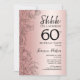 Rosa Dourado Surpresa 60º Convite de aniversário. Design Glam feminina com sotaques botânicos e letra de script de tipografia. Simples cartão de convite floral perfeito para uma festa surpresa na moda. Pode ser personalizado para qualquer idade. Impressos convites Zazzle ou modelo de impressão digital instantânea para download.