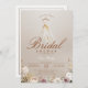 Celebrar a noiva com este elegante chá de panela com um vestido de noiva de cor aquosa, rosa florais empoeirados, gramíneas secas e eucalipto verde. Um fundo bege neutro e uma guião delicada dão a esta design um eterno e um sentimento romântico - perfeito para as celebrações do outono, jardim ou inspiradas em vassoura. Personalize frente e verso com os detalhes do evento.