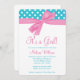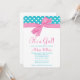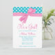 Convites azuis bonitos do chá de fraldas do rosa e da cerceta. Caracterizando bolinhas da cerceta e um gráfico cor-de-rosa feminino do arco. Aperfeiçoe para um chá de fraldas da menina. Na moda e bonito. Personalize facilmente para seu partido! O design é ilustrações/gráficos impressos plano - FITA NAO REAL.