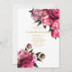 Um convite para o casamento floral, cor-de-rosa-escuro. Cor-de-rosa forte e ouro em negrito.